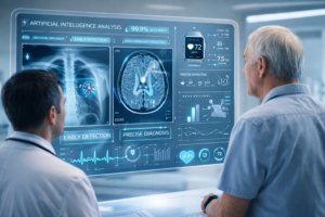 Figura 2: Inteligência Artificial analisando imagens médicas e dados de saúde